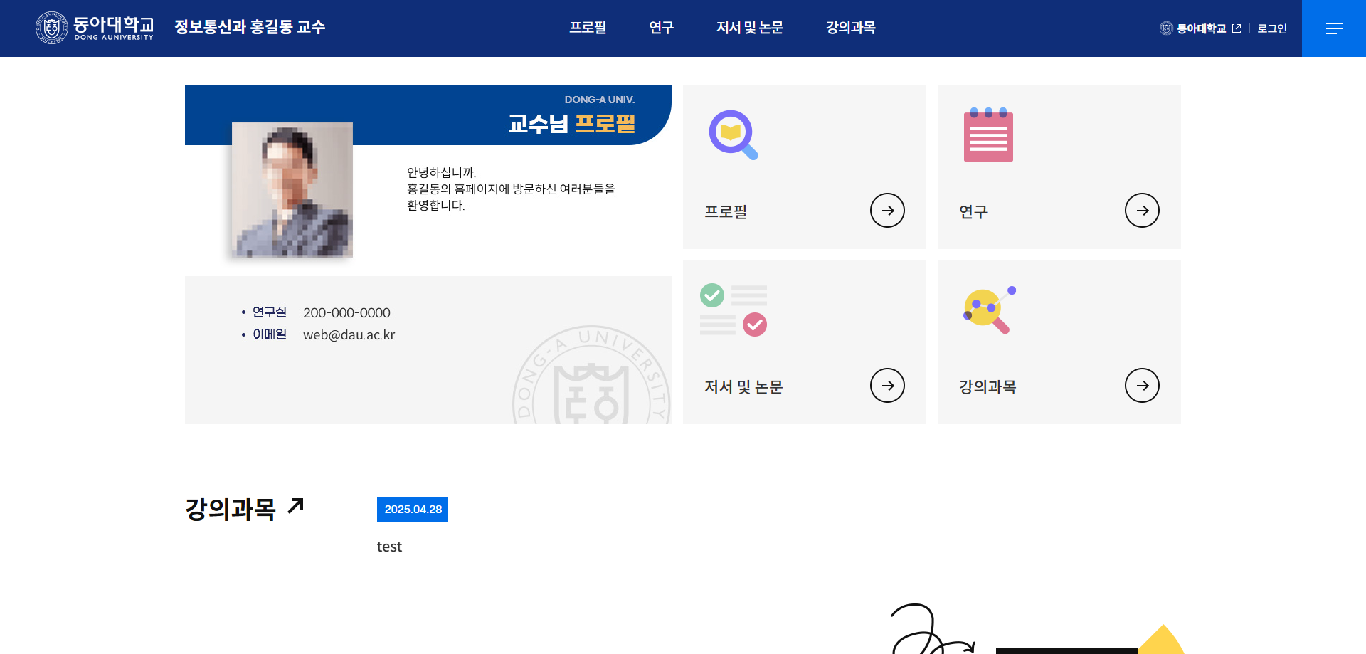 4. 동아대학교 메인 홈페이지 "교수소개"메뉴에 개인 홈페이지 링크 방법